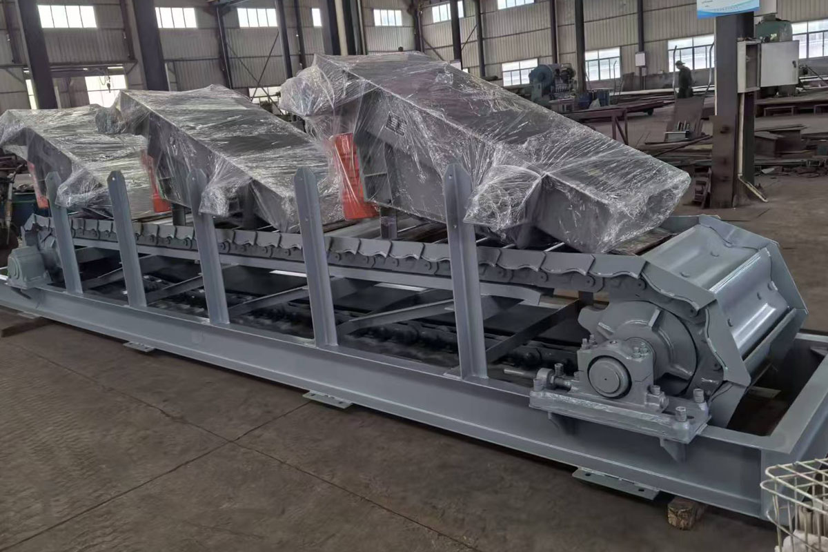 中型板式給料機(jī)是一種廣泛應(yīng)用于礦山、建材、冶金等行業(yè)的連續(xù)或間歇輸送設(shè)備,主要用于將塊狀或松散物料從貯料倉輸送至破碎機(jī)、輸送機(jī)等設(shè)備。中型板式給料機(jī)其工作原理是通過電機(jī)驅(qū)動(dòng)減速器,經(jīng)偏心機(jī)構(gòu)、棘爪、棘輪等部件實(shí)現(xiàn)鏈板間歇或連續(xù)運(yùn)動(dòng),完成物料輸送。