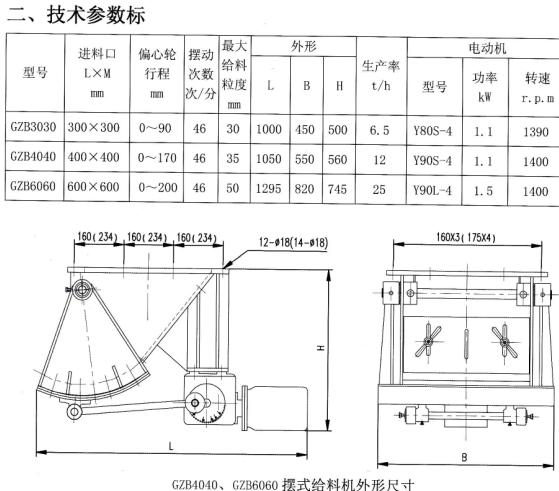 GZB型擺式給料機也稱為槽式給料機或者往復(fù)式給料機,其多作為球磨機集礦帶式輸送機的給料設(shè)備。擺式給料機適用于選礦、煤炭、化工及其它部門,將顆粒狀物料從貯存經(jīng)漏斗輸送給各種類型的受料裝置,不適宜輸送干粉或太大粒度的物料,否則會出現(xiàn)粉塵污染及出口堵塞現(xiàn)象。